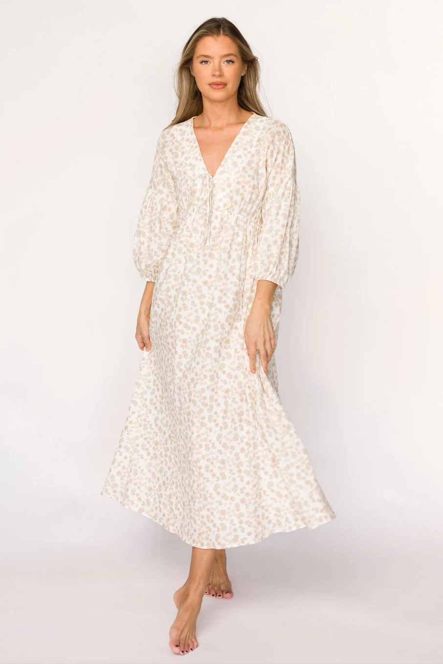 Hunter 100% Cotton Gauze Midi Dress in Natural/Fawn Floral - Bump Friendly