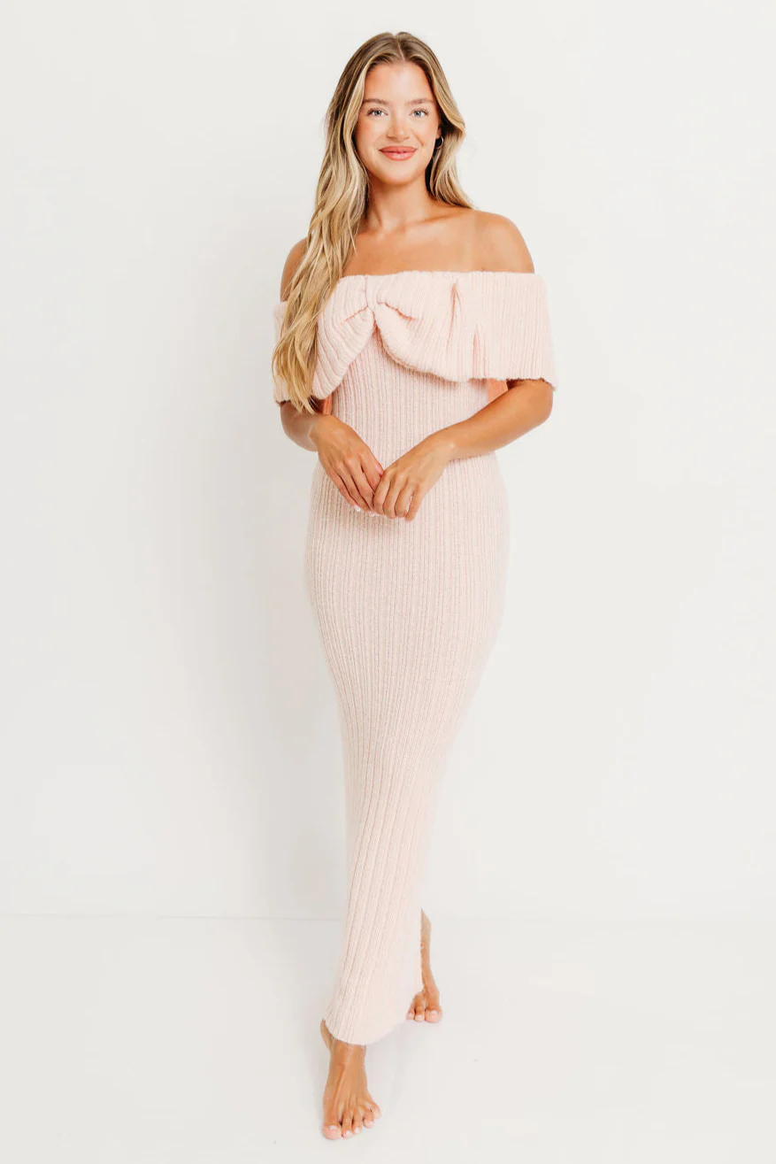 Aston Bow Front Maxi Sweater Dress in Pinkish Petal – Bump Friendly & Inclusive Sizing (XS-3XL)
