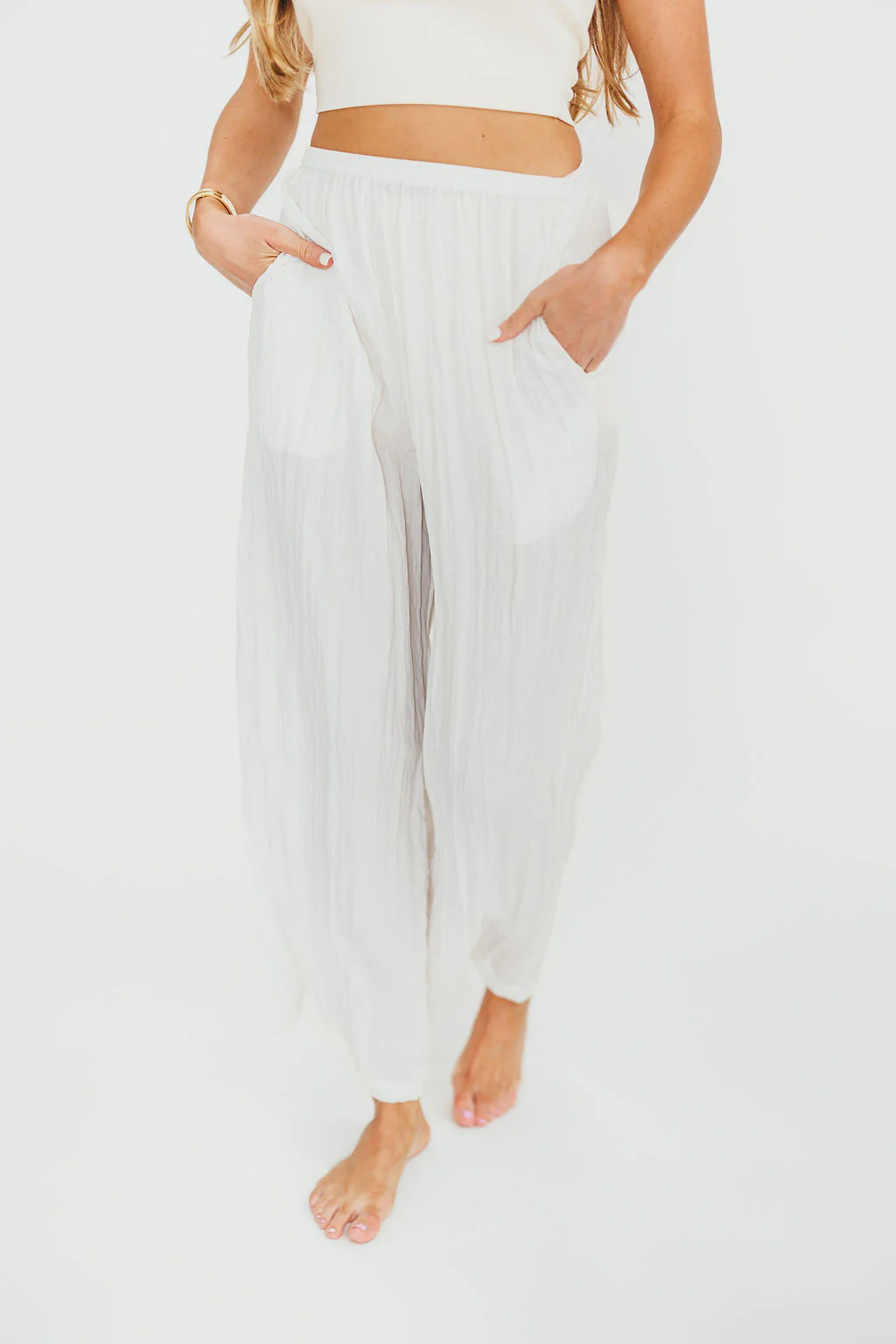 Harmony Crinkle Fabric Pants in Milk (Please see description) *Final-Sale*