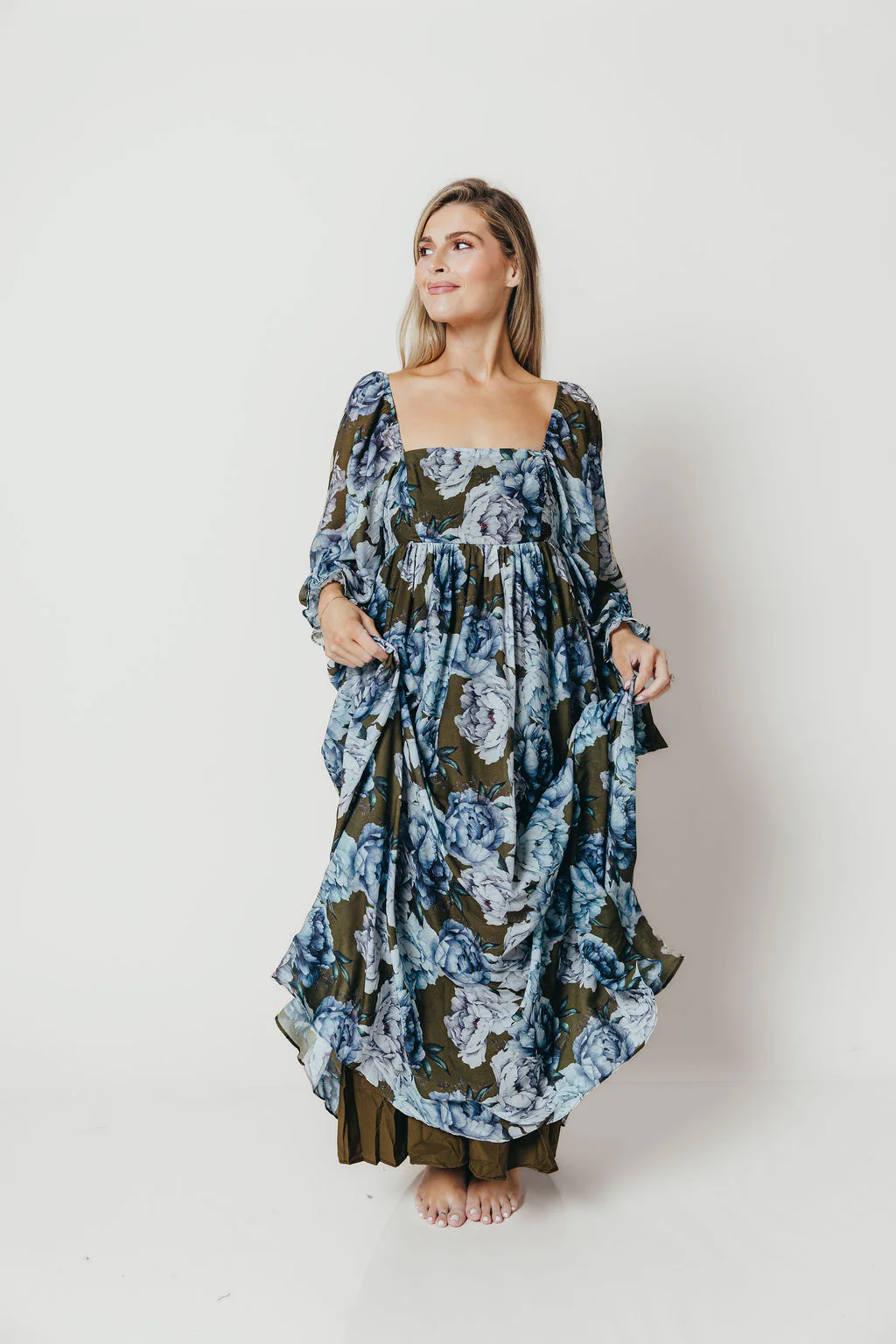 Mona Maxi Dress in Olive/Blue Floral - Bump Friendly